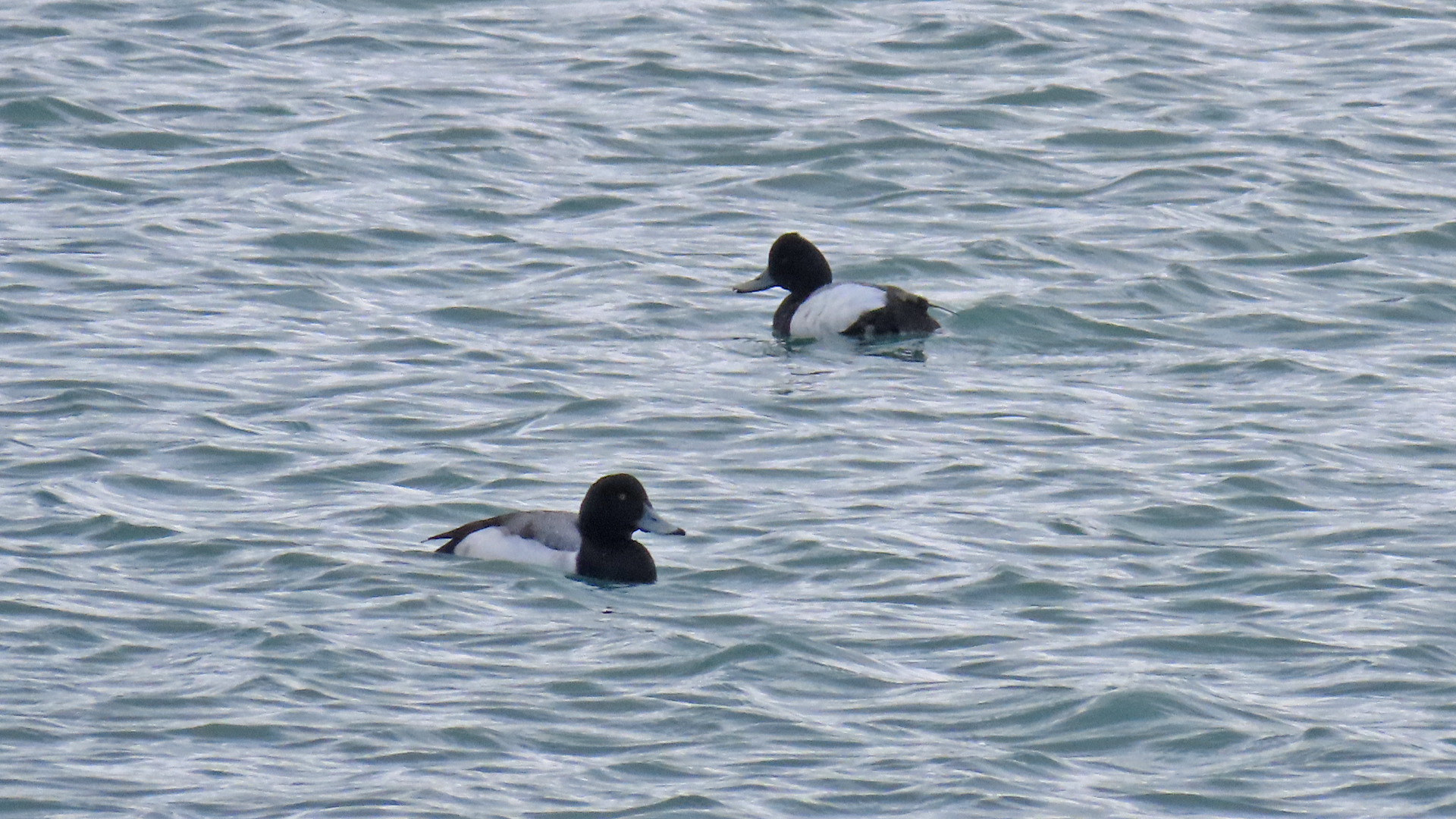 We gathered at 7:00 AM at the Sheboygan Marina, and we scanned through the ducks, finding MALLARD, GREATER and LESSER SCAUP, BUFFLEHEAD, COMMON GOLDENEYE, and COMMON and RED-BREASTED MERGANSERS. Several KILLDEER flew over, along with a few AMERICAN ROBINS and COMMON GRACKLES, and a NORTHERN CARDINAL and HOUSE FINCHES were singng nearby — giving us a nice taste of spring. At one point, a pair of NORTHERN SHOVELERS flew in, and later a beautiful male LONG-TAILED DUCK dropped in quite close to the shore, giving us very good looks!