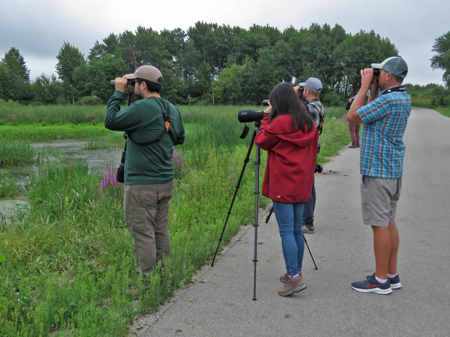 Driving further along the Auto Tour we stopped at a marshy area where quite a few shorebirds were present – including GREATER and LESSER YELLOWLEGS, WILSON’S SNIPE, SOLITARY SANDPIPER, and WILSON’S PHALAROPE – with some of them giving us great views. Most of us were also able to get decent looks at SORA and VIRGINIA RAILS, although they were playing “hide and seek” in the cattails.