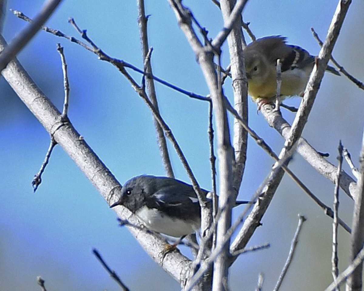 BLACK-THROATED BLUE WARBLER AND BLACKPOLL WARBLER - PHOTO BY TOM SCHULTZ