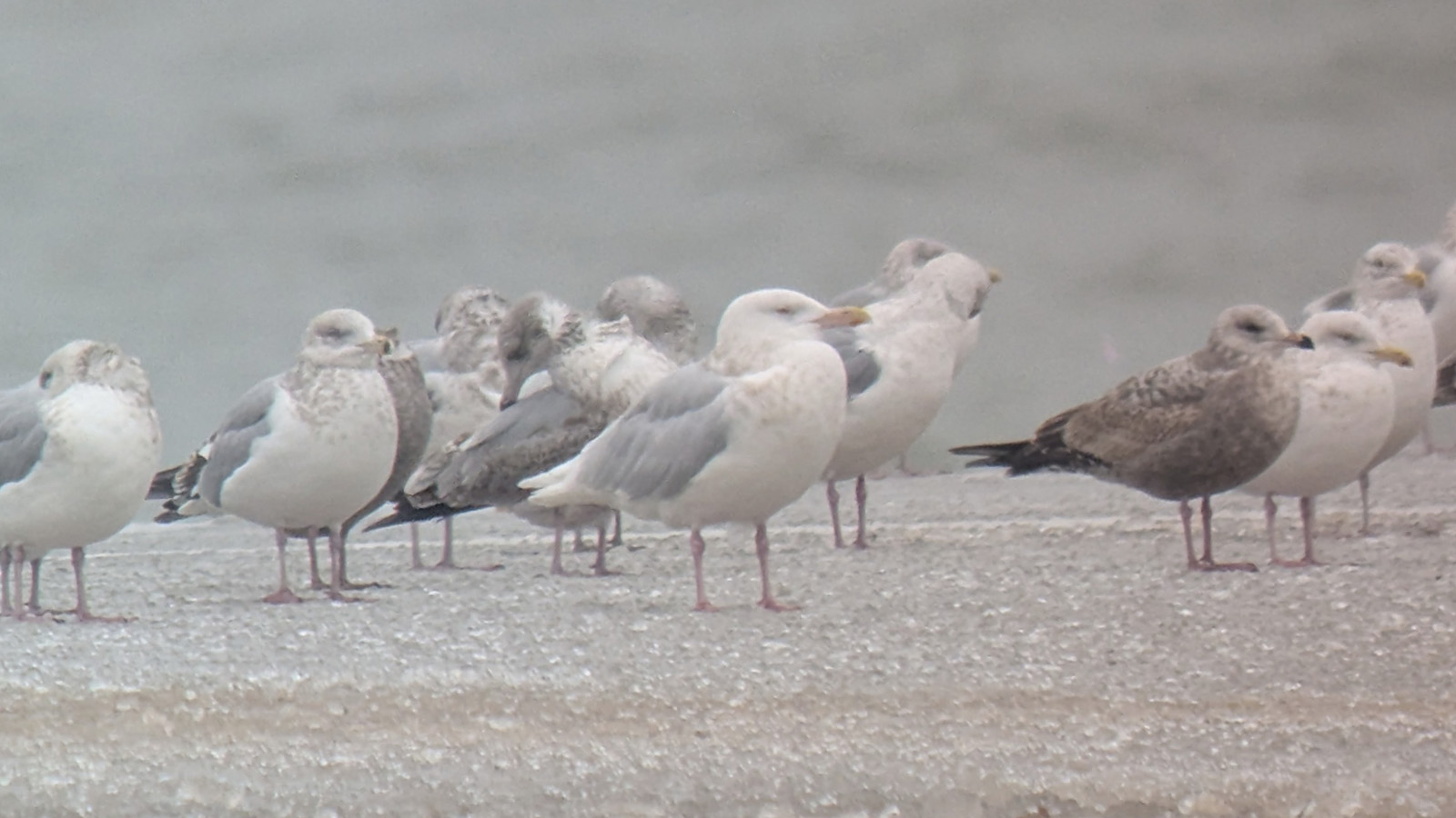 We then headed over toward North Point, and found another group of gulls standing along the shore. Among several HERRING and RING-BILLED GULLS were four adult ICELAND GULLS (THAYER’S type), showing their dark eyes and prominent white spots on the tips of their outer primaries. We then made a last stop at the river, right near the 8th Street bridge where a hybrid COMMON GOLDENEYE x HOODED MERGANSER had been reported. We had great looks at this unique bird as it swam among some COMMON GOLDENEYE and RED-BREASTED MERGANSERS.
