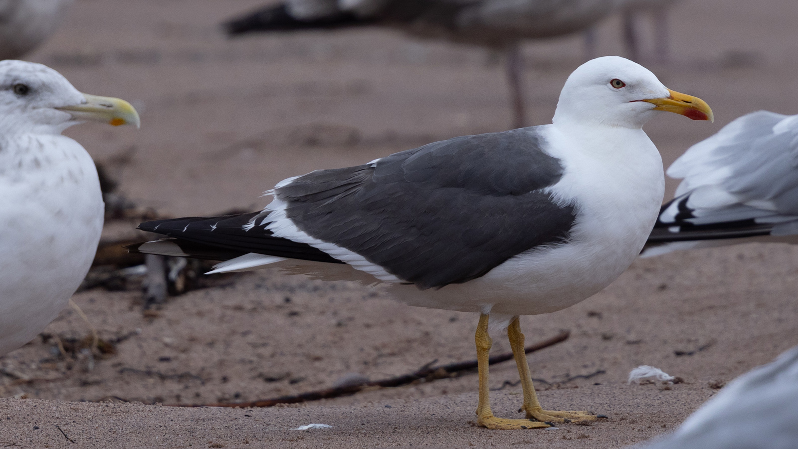 A LESSER BLACK-BACKED GULL arrived on the beach about 7:15 AM, providing good looks as it perched and preened, and then a little while later a juvenile was also spotted. There was another period of excitement when a SURF SCOTER was found around 8:35, swimming by itself quite a distance offshore. Another was spotted (or perhaps it was the same bird?) at 9:02, flying past us and heading eastward. By around 10:00 AM, many birders had departed for home, with just a few birders remaining on the beach – still hoping to spot Sabine’s Gulls, which unfortunately were not seen this year.