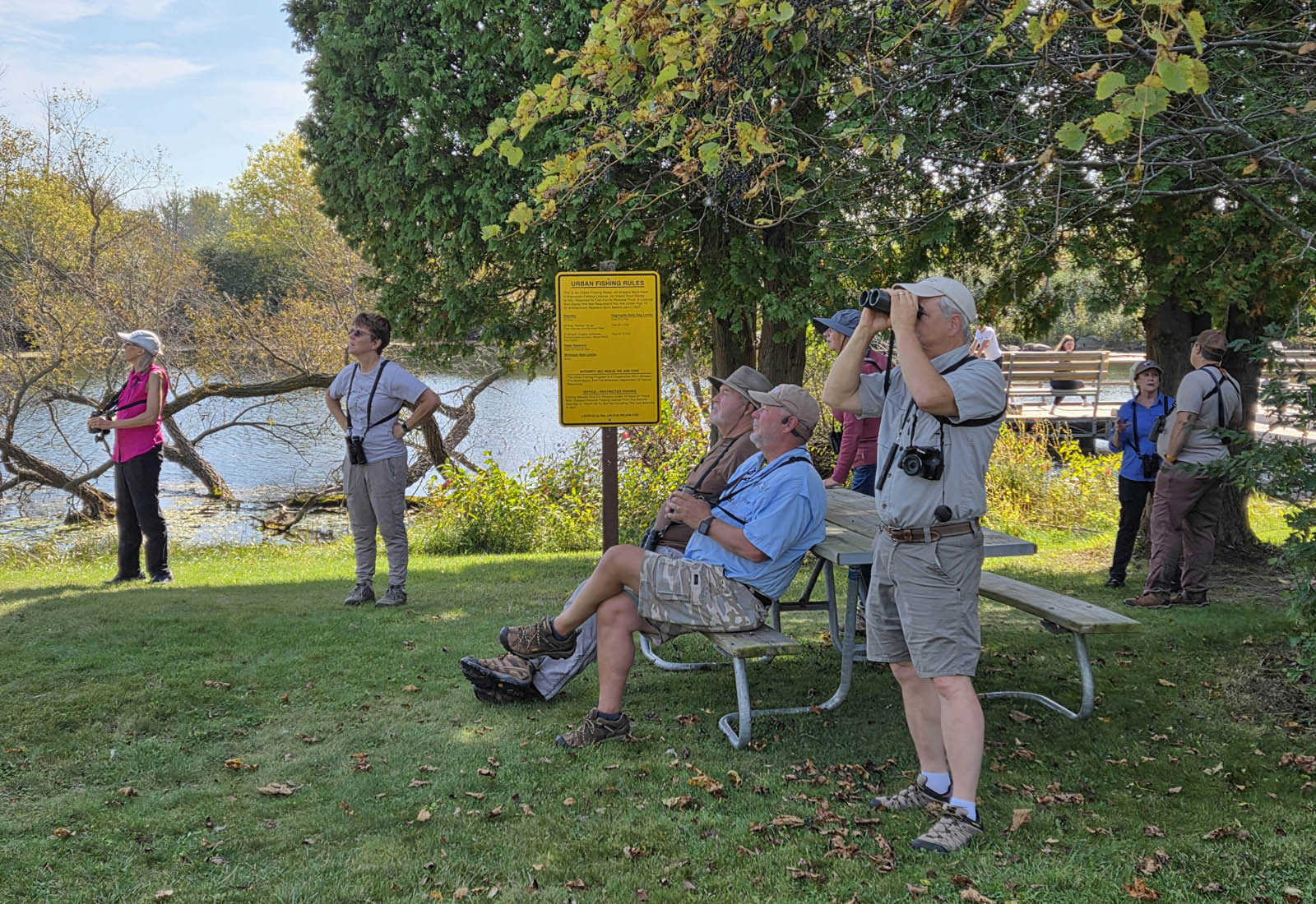 Also observed were a NORTHERN FLICKER and a YELLOW-BELLIED SAPSUCKER, and a BELTED KINGFISHER was heard and then seen near the pond. In the distance we spotted a couple of TURKEY VULTURES soaring southward, but unfortunately no other hawks were observed. It was now just a few minutes before noon, so we decided to wrap up our field trip at that point. (Note: Most years we also included a stop at Forest Beach Migratory Preserve to assist them with their Big Sit bird count, but this year that event wasn’t scheduled to happen until the following weekend.)