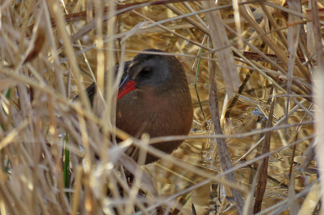 At one point someone in the group spotted a Whooping Crane flying across the marsh, and we watched this magnificent white bird until it dropped down among the cattails. Upon landing, it immediately started unison-calling with its mate! This is the same pair that nested in the marsh last year, and we were very pleased to see and hear them.