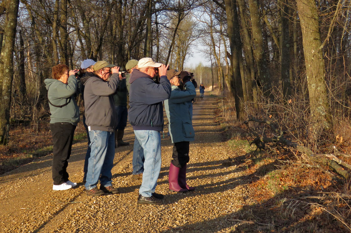 The morning was about as perfect as it could be as our group gathered at 5:00 AM -- 48 degrees, with calm winds and clear skies. Birds were singing all around us, with Swamp Sparrows, American Bitterns, and Sora and Virginia Rails calling from the marsh. A pair of Great Horned Owls called in the distance, and from time to time bugled their unison calls from all directions.