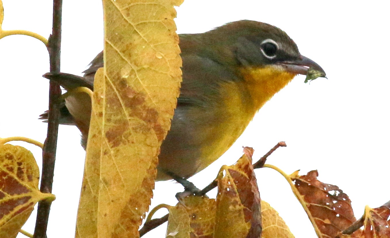 Prior to the onset of cold and snow, a Yellow-breasted Chat was a great find in Milwaukee. This bird was photographed and is one of the three latest records for the state. A White-eyed Vireo in Fond du Lac County was also a pleasant surprise. A Townsend's Solitaire was carefully observed and photographed in Ozaukee County. Carolina Wrens were found in Milwaukee and Polk counties.