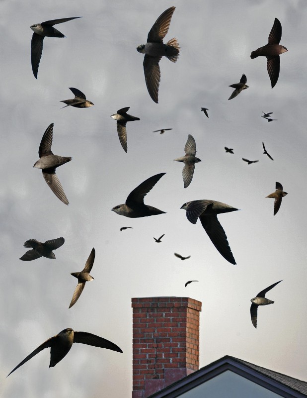 - Look for tall brick chimneys (or ones on homes) that are uncapped. Watch to see where swifts are feeding and congregating.