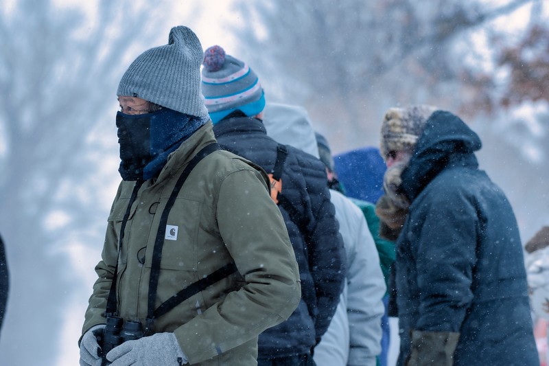 Birders gathered in frigid temperatures to go birding. Photo taken by Tom Schultz.